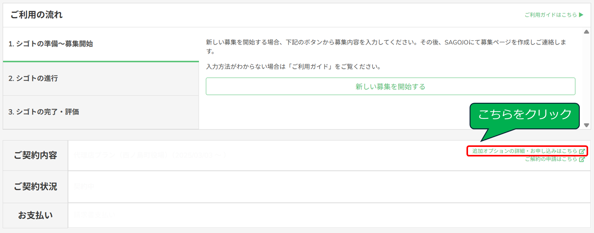 オプションメニューなど、追加でSAGOJOに相談したいことがあるケースのご案内ページです。