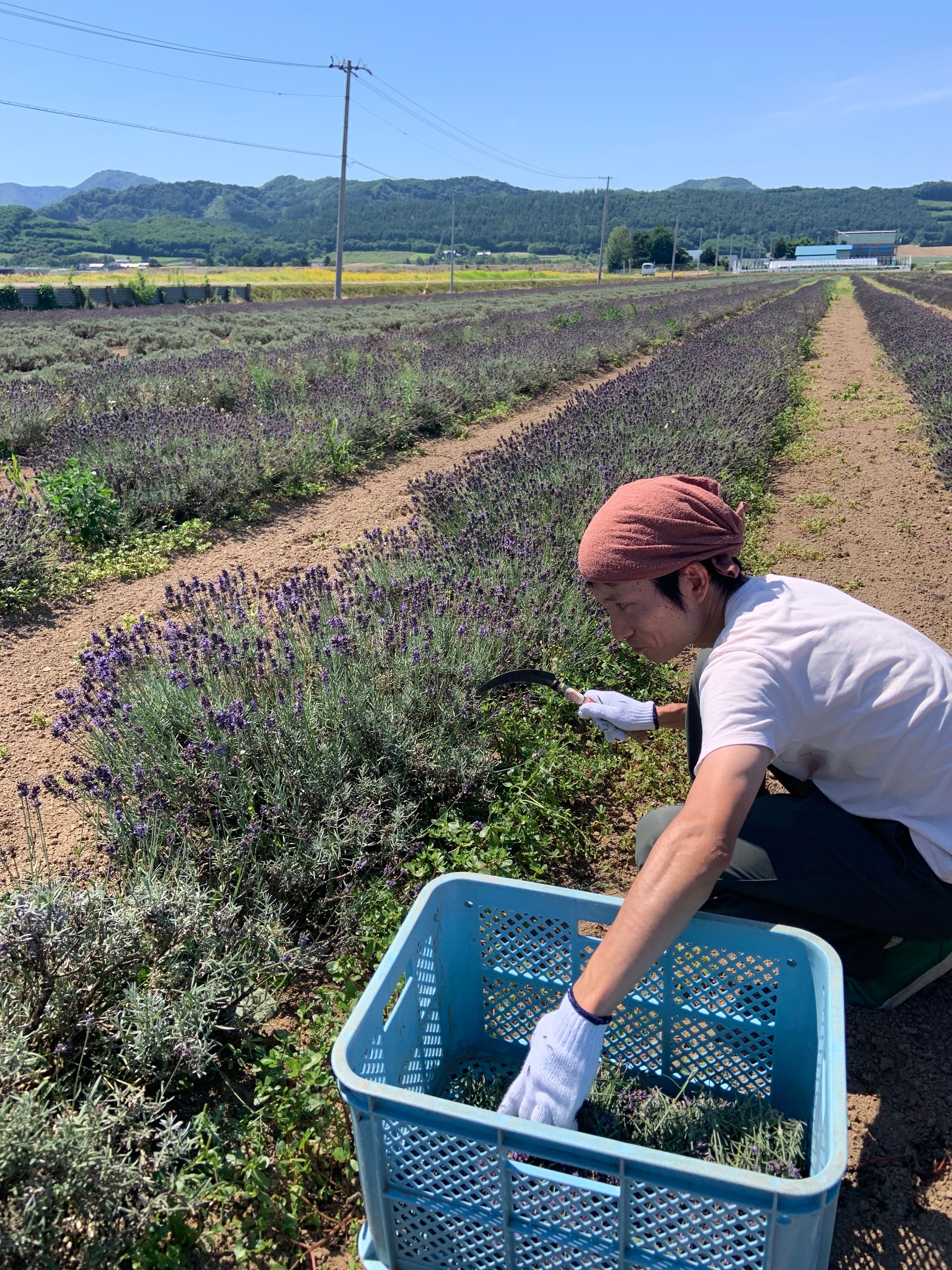 初夏の丘に広がる香りに包まれながらの作業は、観光では体験できない“本気のラベンダー体験”です。